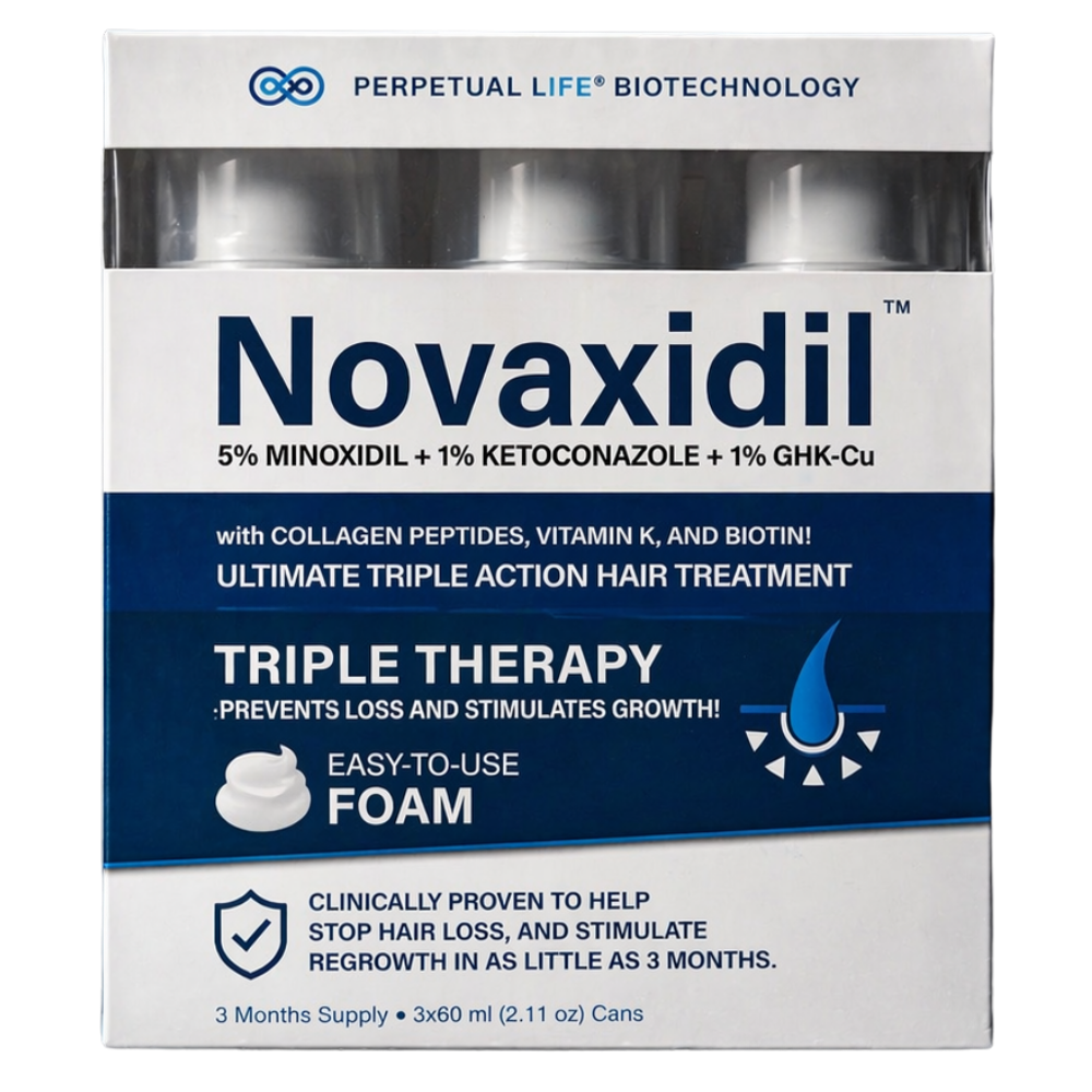 Novaxidil is one of the only formulas that targets ALL 3 drivers of hair loss: